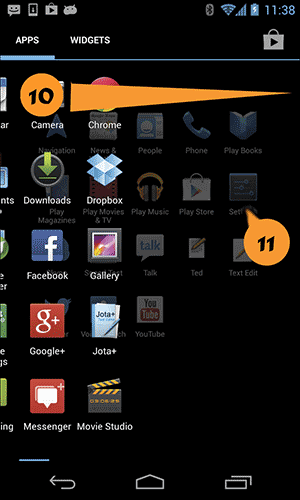 - Коснитесь приложения и запустите его. Например, коснитесь «Настройки» (11), чтобы открыть приложение настроек для конфигурирования Android.
