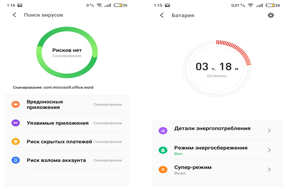 Мониторинг батареи позволяет с легкостью найти причину “жора” батареи. Не секрет, что многие приложения работают в фоне, но с Flyme нет ничего сложного, чтобы заморозить их, но об этом немного позже. Супер режим позволяет использовать только звонки, что очень помогает при 1-10% заряда.