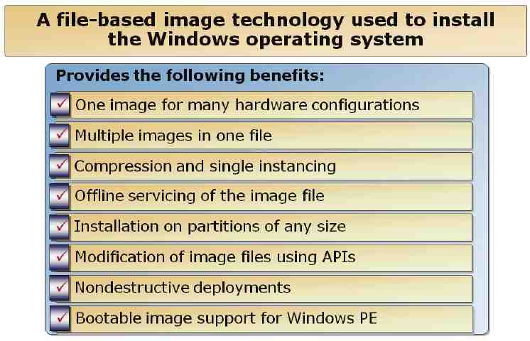 По сравнению с другими форматами WIM имеет много преимуществ, например следующие: