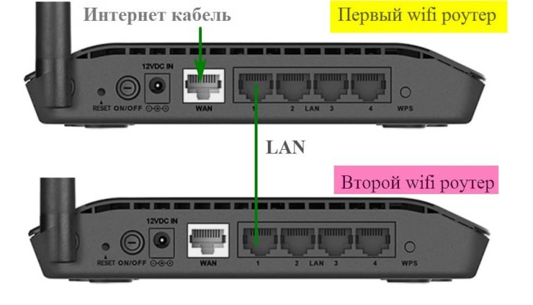 - Соедините роутеры друг с другом таким образом, чтобы к главному роутеру было подключено LAN-соединение.