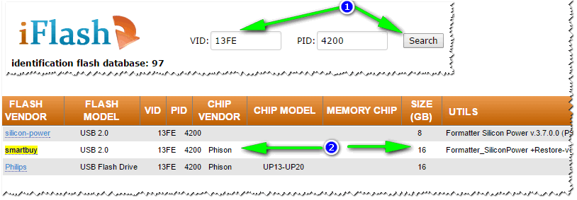 Поиск выдаст носитель с вашим PID и VID, название производителя, модель контроллёра и ПО для работы.