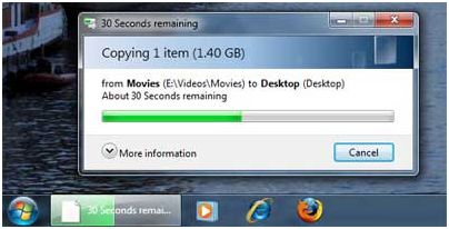 Ещё одна новинка – это видимое прямо на открытых иконках в панели задач прогресс-бар, который показывает процент выполнения определенной задачи (например, копирование/перемещение, скачивание файла или запись диска), благодаря этому не придется каждый раз переключаться между окнами.