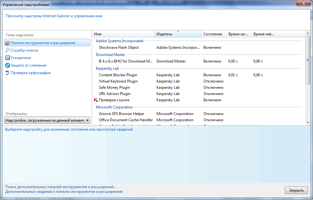 В дополнение к конфигурации браузера, разумно установить дополнительные повышающие безопасность браузера надстройки. Большинство дополнений перед установкой в браузере требуют вашего разрешения, однако некоторые их них устанавливаются самостоятельно. Чаще всего это происходит, если надстройка, является частью установленной на ПК программы. Имеющиеся в Internet Explorer дополнения Вы всегда можете просмотреть, включить или отключить.