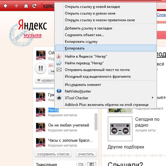 Итак, вы нашли то, что искали, послушали найденный файл, создали или просто добавили в плейлист для последующего прослушивания. А как же теперь скачать его себе на компьютер, чтобы скопировать в телефон или в мр3-плеер? К сожалению такой возможности Яндекс-музыка не предоставляет. Но выход из этой ситуации все же есть.