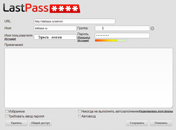 На этой странице Вы можете выбрать группу для этого сайта и определить производить ли на него автовход или наоборот запретить автозаполнение. Не советую отмечать опцию автоматического заполнения, если при входе на сайт требуется ввести капчу. Вторая известная мне проблема – два аккаунта на одном ресурсе.