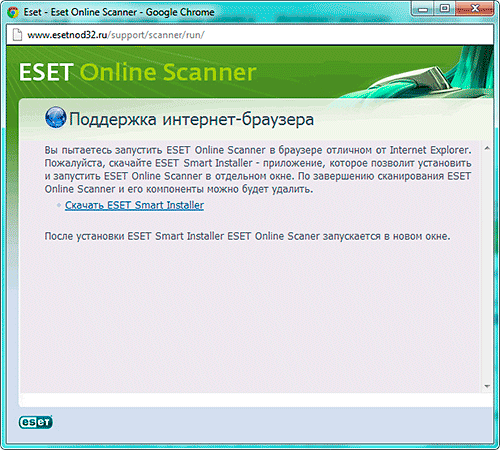После этого откроется окно, в котором вам предложат скачать ESET Smart Installer