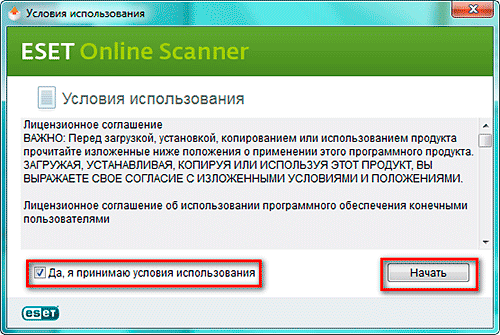 Скачиваем и запускаем. После запуска нам предложат согласиться с условиями использования. Ставим галочку и нажимаем кнопку «Начать».