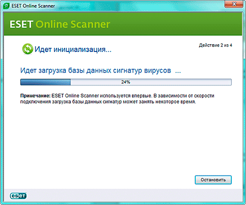 Так как для полноценной проверки требуются актуальные антивирусные базы, начинается их загрузка.