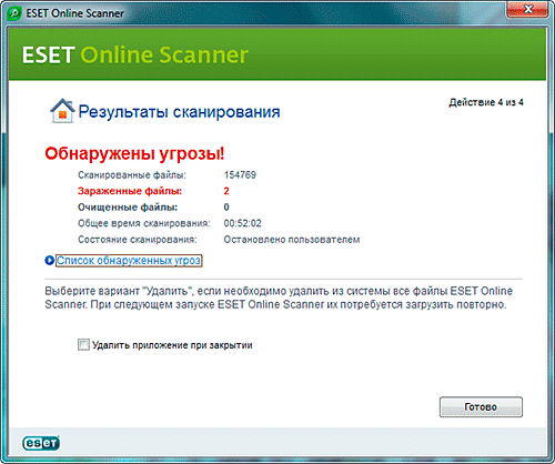 В результате сканирования у меня обнаружилось 2 заражённых файла.