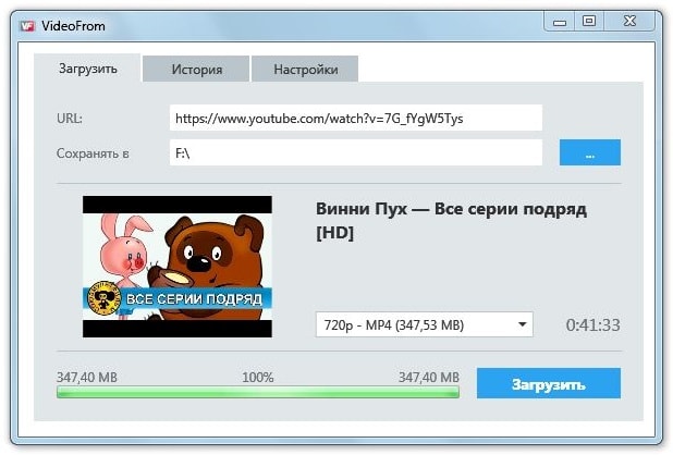 У любого активного пользователя глобальной паутины рано или поздно появляется потребность в загрузке роликов с YouTube. Во-первых, такая возможность лишает необходимости смотреть лишнюю рекламу. Во-вторых, это помогает тем, у кого есть трудности со стабильностью подключения. Сегодня одной из лучших русскоязычных программ для скачивания роликов с YouTube является VideoFrom, скачать которую можно по этой ссылке (сайт разработчиков). Приложение быстро и без труда загружает выбранное видео с популярного видеохостинга YouTube. Кстати, софт был создан отечественным производителем, который постоянно занимается обновлениями и адаптацией программы к современным условиям.