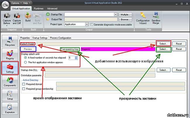 Spoon Virtual Application Studio позволяет задать всплывающее изображение, которое будет отображаться во время запуска приложения. Запуск этого изображения не только повысит брендинг вашего приложения, но и весьма полезно в случае, когда приложению требуется несколько секунд для инициализации.