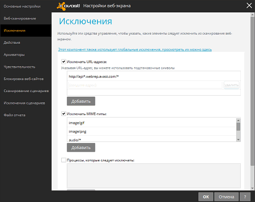 Во вкладке "Исключения" веб-экрана добавьте любимые вами, но заблокированные avast адреса веб-сайтов. И, наоборот, во вкладке "Блокировка веб-сайтов" можно прописать адреса сайтов, которые антивирус будет блокировать.