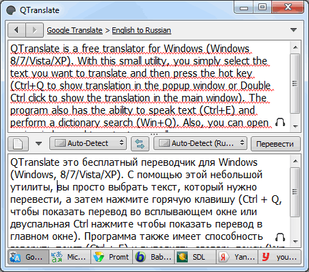 Достаточно привыкнуть к горячим клавишам и работа в онлайн переводчике QTranslate становиться быстрой и удобной. По крайней мере, удается переводить поабзацно большие статьи.
