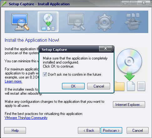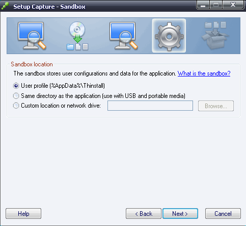 В этом окне можно выбрать User profile, но тогда для сохранения песочницы рядом с файлом запуска придётся создавать радом с ним папку Thinstall.