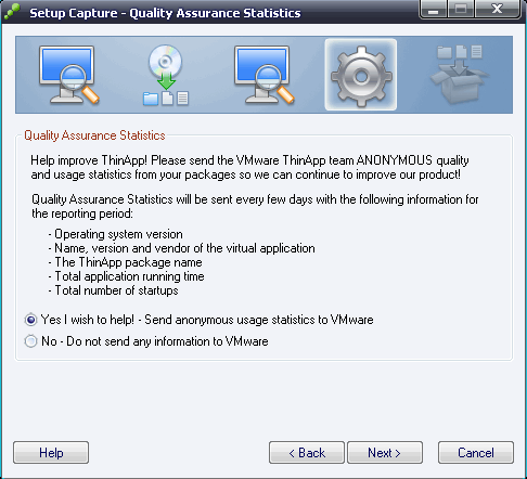 Выбрав нажимаем кнопку Next и переходим к окну Quality Assurance Statistics, где отмечаем строку No - Do not send any information to vmware