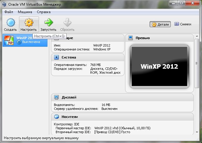 Пришло время и к настройкам самой виртуальной машины. В левом верхнем углу нажмите на значок "Настроить".