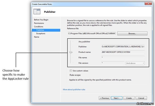Создавать правила AppLocker следует при помощи Create Executable Rules Wizard.
