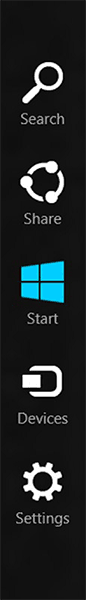 Чудо-кнопки обеспечивают управление и взаимодействие с приложениями и конфигурацией Windows 8.1. Они содержат кнопу "Пуск", также известную под флагом Windows, "Поиск" и несколько параметров системы.