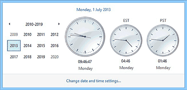 К тому же Вы можете добавить до двух дополнительных часов, которые будут графически отображаться при нажатии на время и дату в панели задач, или в виде всплывающего окна при наведении мыши.