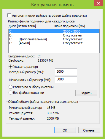 Настройки виртуальной памяти