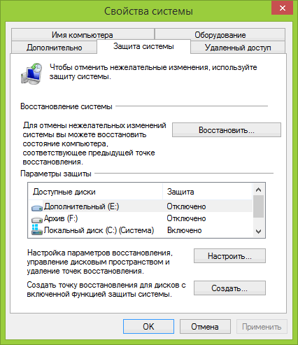 Во вкладке защиты системы, вы можете включить защиту для всех других дисков и добавить их к функции восстановления. А также, вы можете определить, сколько выделить места на диске под восстановление, увеличив, если его много, и уменьшив, если у вас маленький SSD.