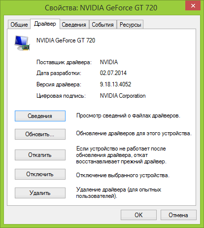 Диалоговое окно свойств драйвера предоставляет большую информацию об нем, но здесь, вы ничего не сможете изменить. А общая вкладка предоставляет вам информацию о правильности работы драйвера.