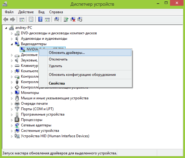 Windows 8.1 обычно сама обнаруживает новые аппаратные средства и пытается установить для них драйвера. Если аппаратные средства новые, то есть выпущены после выпуска операционной системы, необходимого драйвера может и не быть. В этом случае, щелкните правой кнопкой на драйвере, и выберите пункт обновления драйверов.
