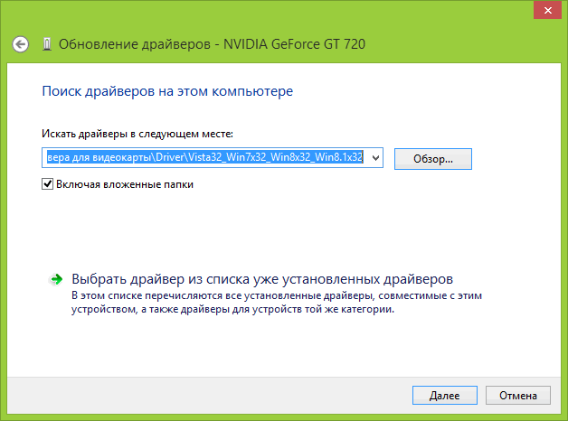 Если вы выберете опцию поиска драйвера на вашем компьютере, Windows попытается идентифицировать эти аппаратные средства. Дальше, если вы знаете, где у вас расположены нужные драйвера, выберите из списка нужную опцию и укажите Windows 8.1 на корректный драйвер.
