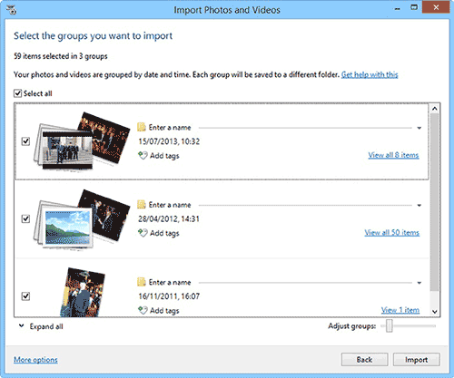В Windows 8.1 импортирование фотографий и видео таким способом, по сравнению с ручным копированием файлов в проводнике, имеет несколько явных преимуществ.