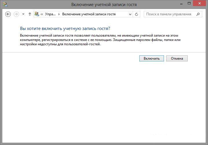 У некоторых владельцев операционной системы Windows 8 и Windows RT возникает проблема с активацией гостевой учётной записи, которая очень необходима для компьютеров со свободным доступом. Дело здесь в том, что в панели управления «Параметры ПК» такой функции просто нет, найти ее можно в классической панели управления, как и в предшествующих версиях операционной системы.