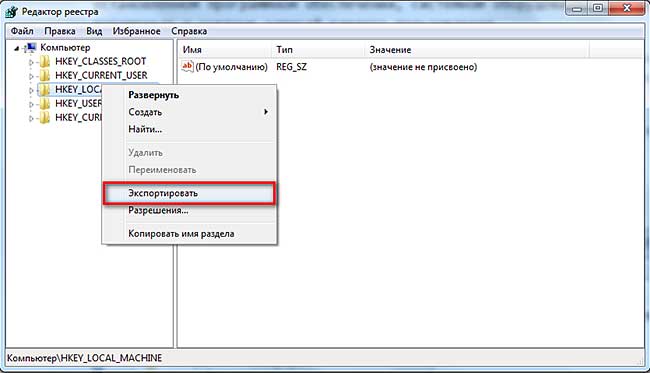 Внимание: До того, как вносить какие либо изменения в разделе реестра, обязательно создайте его резервную копию или выполните экспорт. Сделать это можно только войдя в систему по учетной записи администратора.