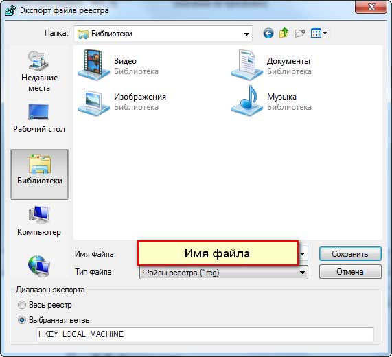 В появившемся окне следует выбрать место, где будут храниться ваши резервные копии раздела. Не забудьте назвать файл. Обратите внимание на расширение файла, оно должно быть .reg. Сохраните копию, нажав на кнопку "Сохранить".
