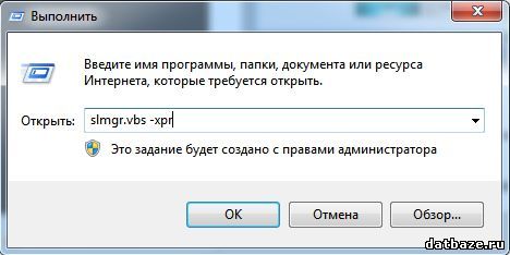 Откройте меню "ПУСК", выберите пункт "ВЫПОЛНИТЬ" и введите команду: slmgr.vbs -xpr