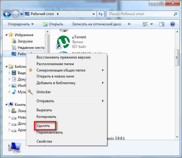 Сначала как удалить. Для того, чтобы удалить записи из раздела "Избранное", выделите не нужную запись и щелкните левой кнопкой по строке "Удалить" в контекстном меню.