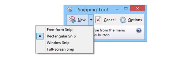 Инструмент «Ножницы» можно запустить со стартового экрана или из вида «Все приложения». Для создания скриншота есть четыре различных способа: свободная форма, в которой Вы сами рисуете область вокруг объекта; прямоугольник, в которой Вы вытягиваете скриншот прямоугольной формы; окно, чтобы получить целое окно, и весь экран.