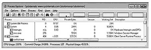 Для отслеживания активности прерываний и DPC можно воспользоваться средством ProcessExplorer, открыв диалоговое окно SystemInformation (Системная информация) и перейдя во вкладку CPU (Центральный процессор), где будет показано количество прерываний и DPC-процедур, зафиксированное при каждом обновлении средством Process Explorer отображаемых результатов (по умолчанию с периодичностью в одну секунду).