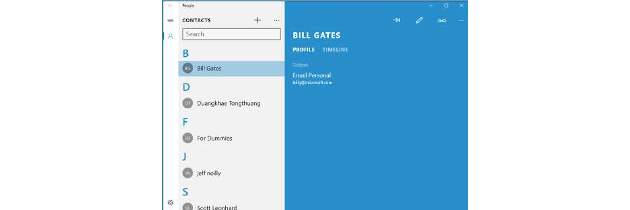 Возможно, вы захотите думать о нем как о приложении Windows 10 Universal People, но на самом деле это просто список контактов Windows 10. В этом нет ничего претенциозного. На самом деле, на данный момент, он даже не такой удобный, как список контактов в Windows 8.1, что кое о чем говорит.