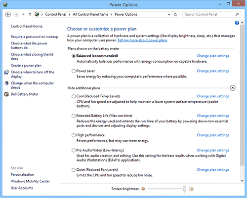 На примере рассмотрим ноутбук Dell, который по умолчанию имеет два плана электропитания, три - нормальный стандарт для Windows. Хотя ваш ноутбук или планшет может иметь и больше, потому что производители аппаратных средств могут добавить свои собственные планы электропитания.