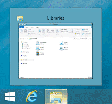 - Удерживание мыши над миниатюрой приблизительно на 1 секунду отобразит окно приложения, даже если оно минимизировано. Показывается только эта программа, все другие временно скрываются.