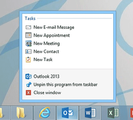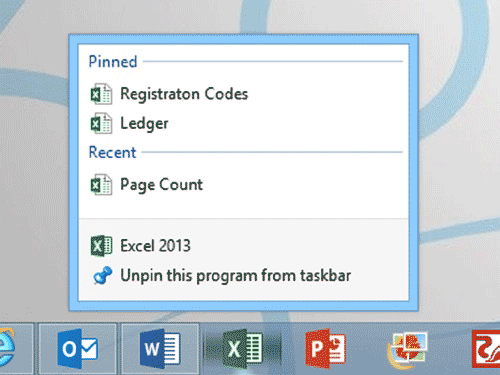 Jump Lists (списки переходов), являются отличным способом организации файлов, с которыми Вы работаете на регулярной основе или для текущего проекта. Jump Lists можно открыть на панели задач одним из двух способов: