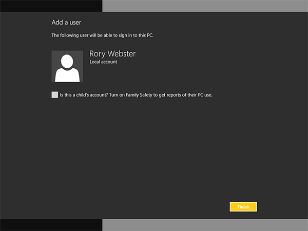 - Локальная учетная запись создана. Щелкните "Закончить", чтобы завершить процесс.