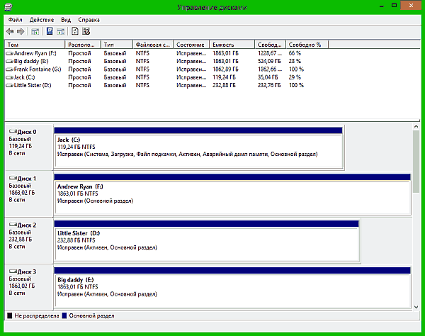 Управление дисками в Windows 7 предоставляет те же уже знакомые в ранних версиях Windows функции, но также включает некоторые новые особенности: