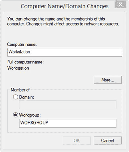 - В следующем диалоговом окне, измените Имя компьютера на предложенное Вашим отделом ИТ.