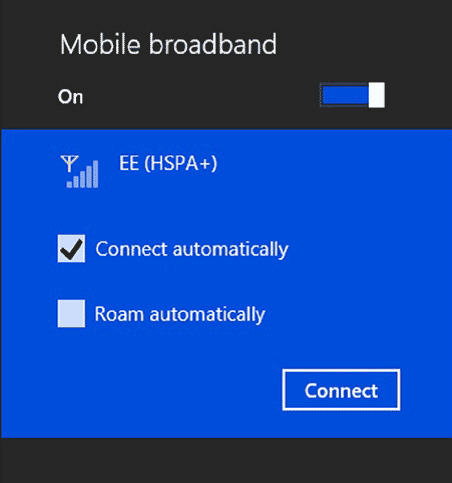 Когда Вы соединяете свой ПК с широкополосной мобильной сетью, все делается почти таким же способом, как при соединении с сетью Wi-Fi, у Вас появится дополнительная опция: Автоматическое перемещение. Вы можете захотеть оставить эту опцию неотмеченной, потому что поставленная галочка позволяет Вашему ПК оставаться соединенным с Интернетом, даже вне своей собственной мобильной сети. В разных странах возможны различия.