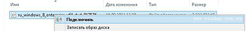В каждой новой версии осей семейства Windows появляются новые полезные возможности не доступные в более ранних. В Windows 7 - записывать DVD диски, а в Windows 8 уже создавать виртуальный привод и работать без установки дополнительного софта с образами ISO. Всё, что для этого требуется это левой кнопкой мыши выделить нужный файл образа, и, кликнув кнопкой контекстного меню выбрать пункт «Подключить», второй вариант – двойной клик по файлу.