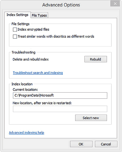 Управление поисковым индексом в Windows 8.1