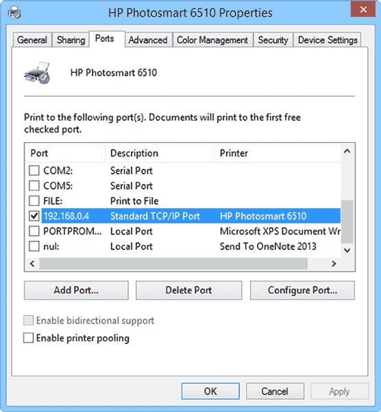 Вкладка "Порты" также полезна, особенно если вы используете старые параллельные или последовательные принтеры, которые очень сложны в установке и правильной настройке, но до сих пор используется в некоторых бизнес-средах.