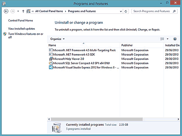 Для удаления программ в Windows 8, вам нужно из панели управления перейти в раздел "Программы и компоненты". Здесь Вы найдете все установленное на вашем компьютере настольное программное обеспечение. Для сортировки и организации своих программ Вы можете использовать заголовки столбцов (название, издатель и т.д.). Программы можно расположить, например, по дате и увидеть недавно установленное программное обеспечение. Для этого нажмите заголовки столбцов (название, издатель и т.д.,) один раз и расположите программы в возрастающем порядке или по убыванию (два клика мышью).
