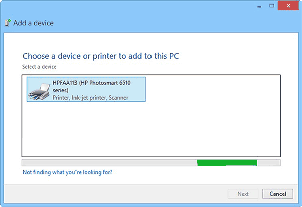 В диалоговом окне "Добавление устройств", Windows 8.1 устанавливает наилучший, по ее мнению, имеющийся драйвер для этих аппаратных средств.
