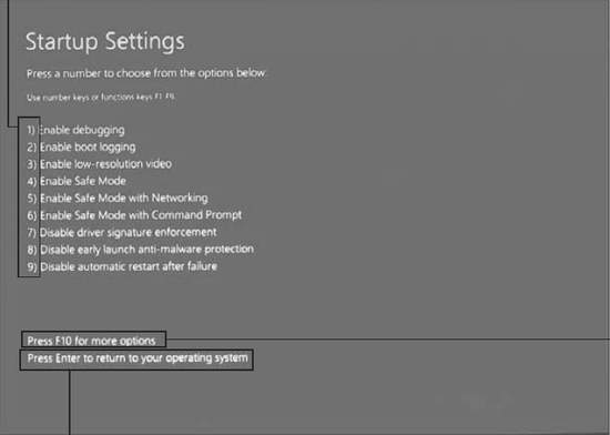 Если вы выберите параметры запуска из меню "Дополнительно", вы увидите показанные на рисунке ниже опции.